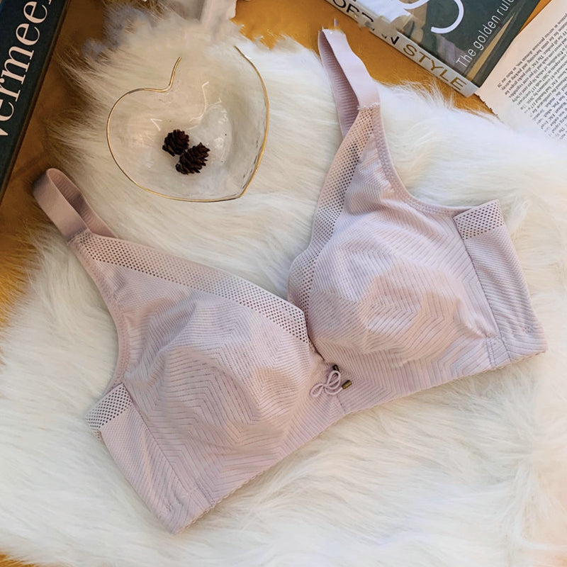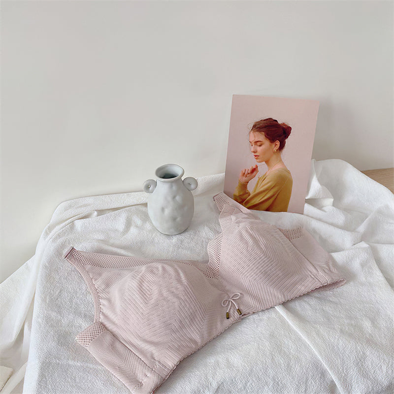 Wireless Simple Gathered Full Cup Lace Bras [BRYM063]
