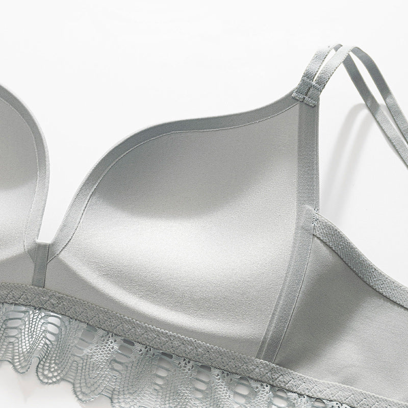 Wireless Simple Seamless Gathered 3/4 Cup Lace Bras [BRYM068]